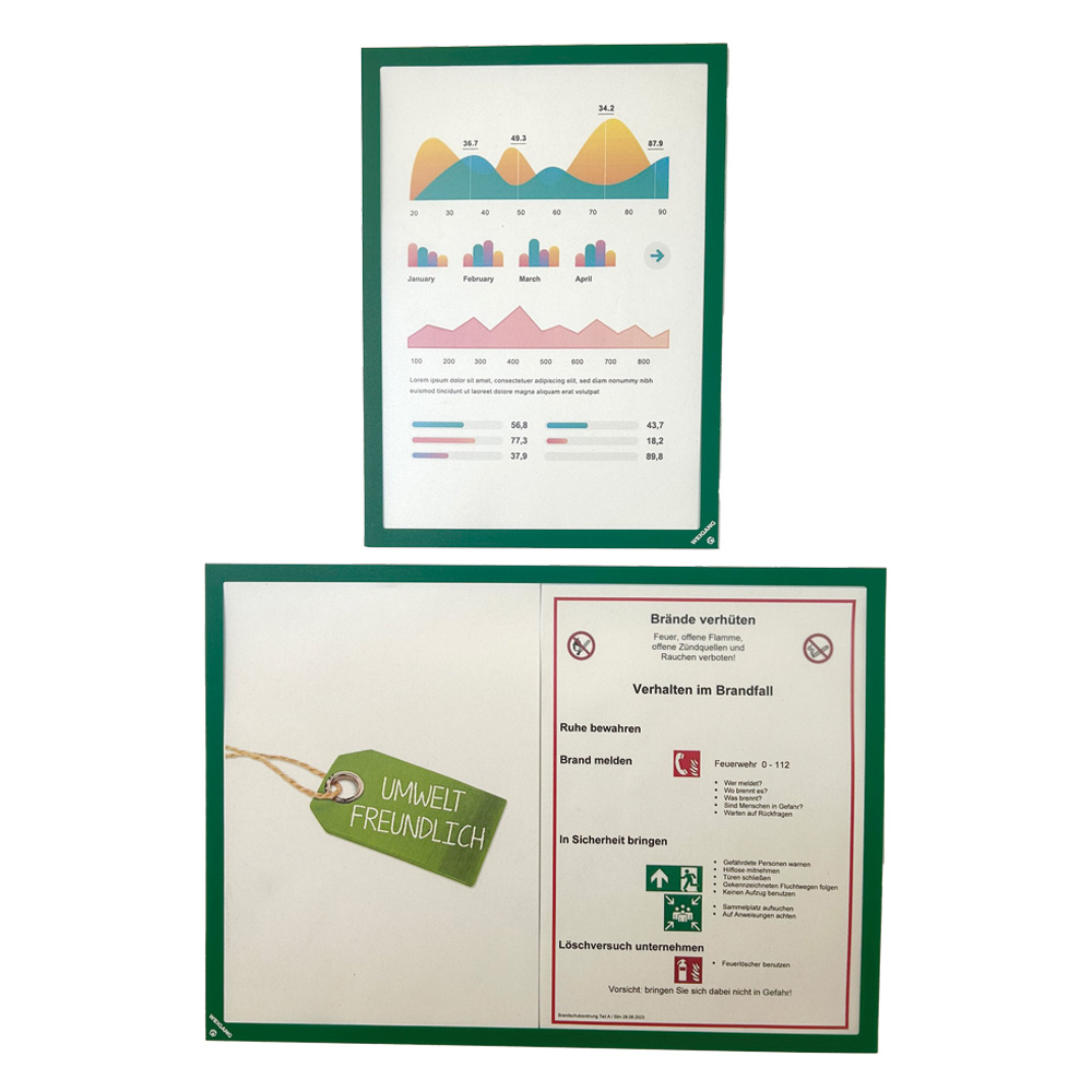 Der Magnetrahmen präsentiert Ihre Informationen übersichtlich und umschließt Ihr Dokument mit einem farbigen Rahmen. Die unterschiedlichen Farben können verschiedene Themenbereiche kennzeichnen.