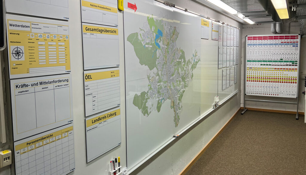 Unsere Produkte und Konzepte unterstützen Sie dabei, Ihren Stabsraum optimal auszustatten – für effizientes Arbeiten, klare Abläufe und eine erfolgreiche Einsatzführung.