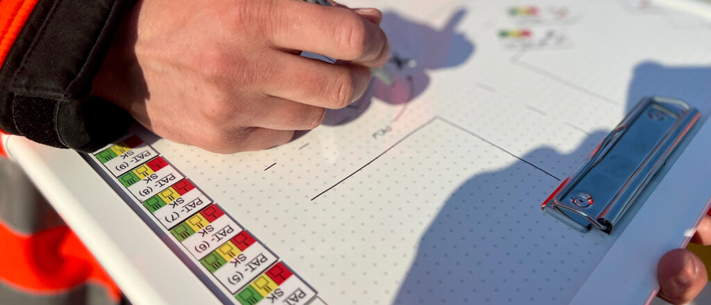 Auf der rechten Tafelseite (Rückseite) gibt es einen gesonderten Platz für die Einsatzplanung und die Ordnung des Raumes. Der Gruppenführer findet hier zudem seine Funktionen der Trupps als Magnete wieder und kann diese direkt beplanen. So kann der Einheitsführer sowohl den Trupps visuell und zeitnah Befehle geben, als auch eine Übergabe an später eintreffende Führungskräfte vorbereiten. In dieser Seite stecken viele Details, sodass im Einsatzfall keine Informationen falsch verstanden oder gar verloren gehen können.