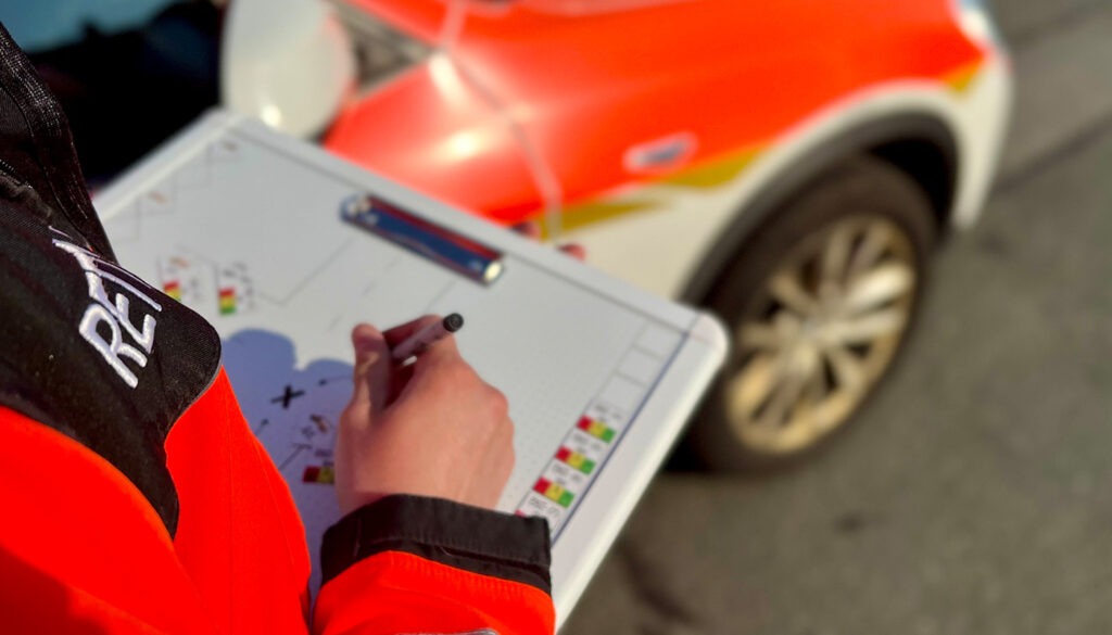Auf der linken Tafelseite (Vorderseite) kann der Einsatzleiter Rettungsdienst sich direkt eine Übersicht schaffen. Im oberen Bereich werden alle Einsatzmittel aufgenommen, welche für diesen Einsatz zur Verfügung stehen oder sich auf Anfahrt befinden.