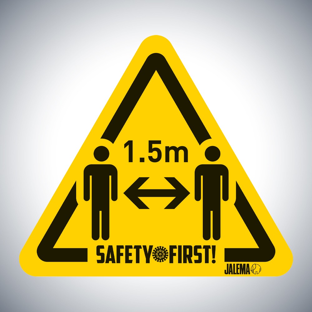 Mit diesem eindeutigen Warnaufkleber können Sie Ihre Mitarbeiter über Sicherheitsvorschriften informieren. Verwenden Sie diesen Warnaufkleber, um Personen 1,5 Meter voneinander entfernt zu halten, damit der Arbeitsplatz für alle so sicher wie möglich ist.