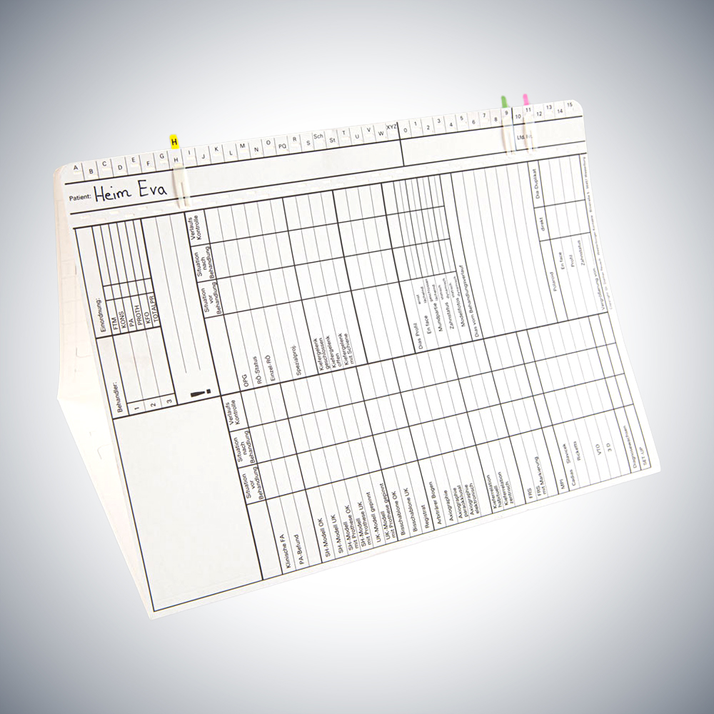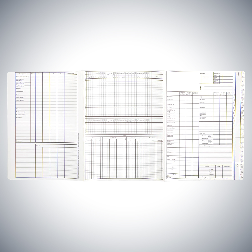 Startseite » Online Shop » Arbeitsmittel für Gesundheit » Patientendokumentation » Patientenkarteikarten » Karteikarten Arztpraxis » Karteikarte Zahnarzt DIN A4 quer – Dreifachkarte