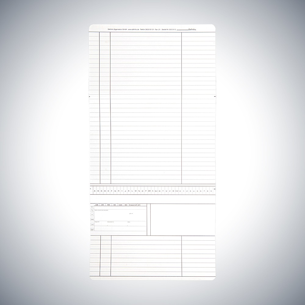 Startseite » Online Shop » Arbeitsmittel für Gesundheit » Patientendokumentation » Patientenkarteikarten » Karteikarten Arztpraxis » Karteikarte Arztpraxis DIN A5 quer für alle Fachrichtungen – Dreifachkarte neutral