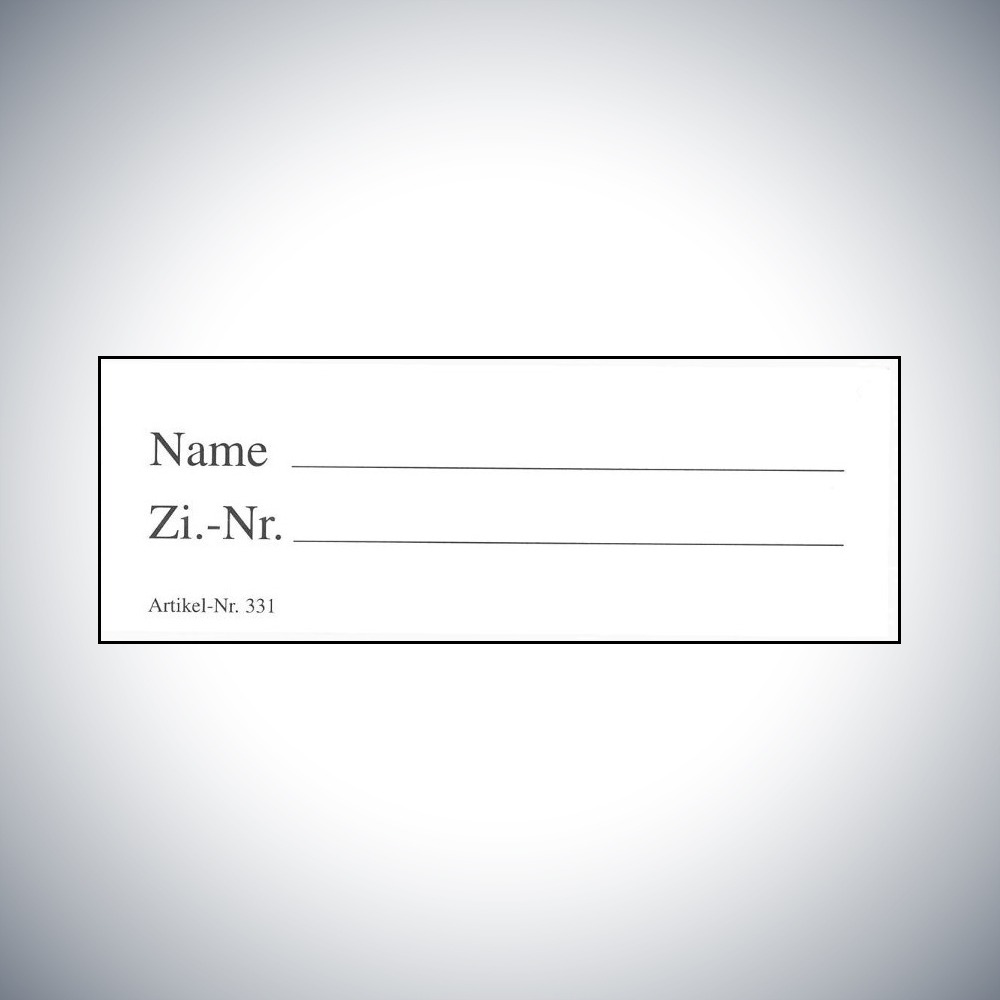 Namenskärtchen aus Karton mit Name und Zimmernummer zum Einschieben in die Kopfleiste für alle Hängemappen in der Pflegedokumentation.
