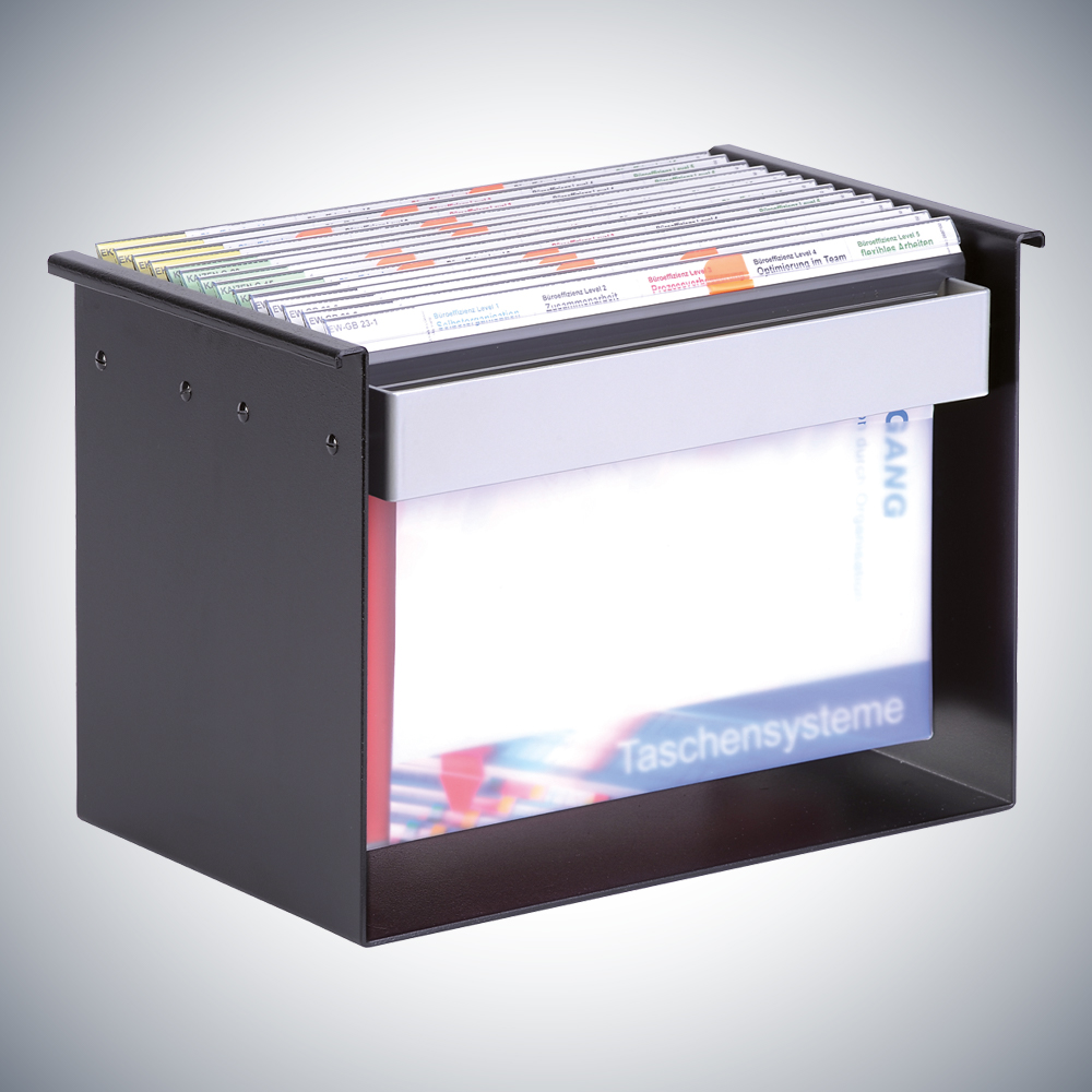 Aktuelles bleibt mit dem Hängeregisterständer „Datoclip+“ – Tischständer immer im Blick! Ihre Datoclip + Taschen, Mappen und Hefter können Sie praktisch auf dem Schreibtisch platzieren – und sogar mitnehmen, dort wo Ihre Unterlagen benötigt werden. (ohne Inhalt)