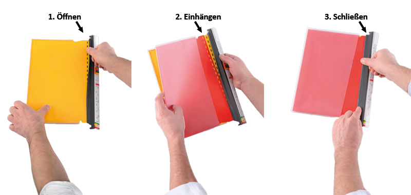 ✓ leichtes Einheften, Blättern und Entnehmen der Dokumente