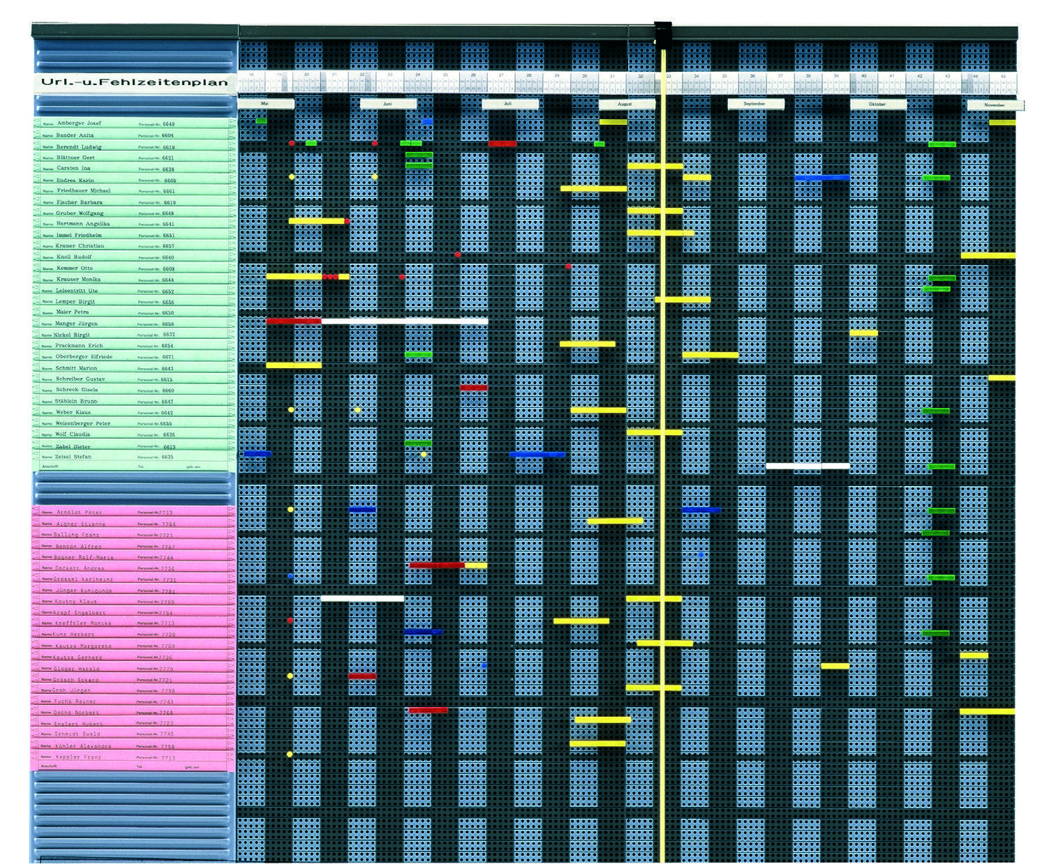 Der Orgasicht Jahresplaner zeigt auf einem Blick die An- und Abwesenheit der Mitarbeiter und hilft Ihnen dabei Ihre Mitarbeiter vorausschauend zu planen. Die farbigen Signale zeigen den Grund der Abwesenheit, die Längen der Signale geben Aufschluss über die Dauer der Abwesenheit.