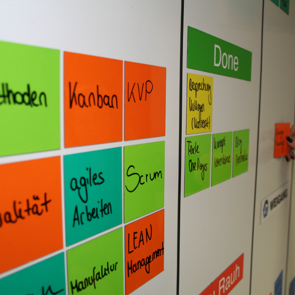 Unsere magnetischen Haftnotizen „TaskCards“ strukturieren Ihre Aufgaben auf dem Whiteboard auf einen Blick. Die magnetischen Haftnotizen „TaskCards“ sind mit wasserlöslichen Stiften beschreibbar und nass abwischbar. Sie können auf allen WEIGANG Whiteboards verwendet werden. Wir liefern Ihnen unsere magnetischen Haftnotizen „TaskCards“ in verschiedenen Farben.
