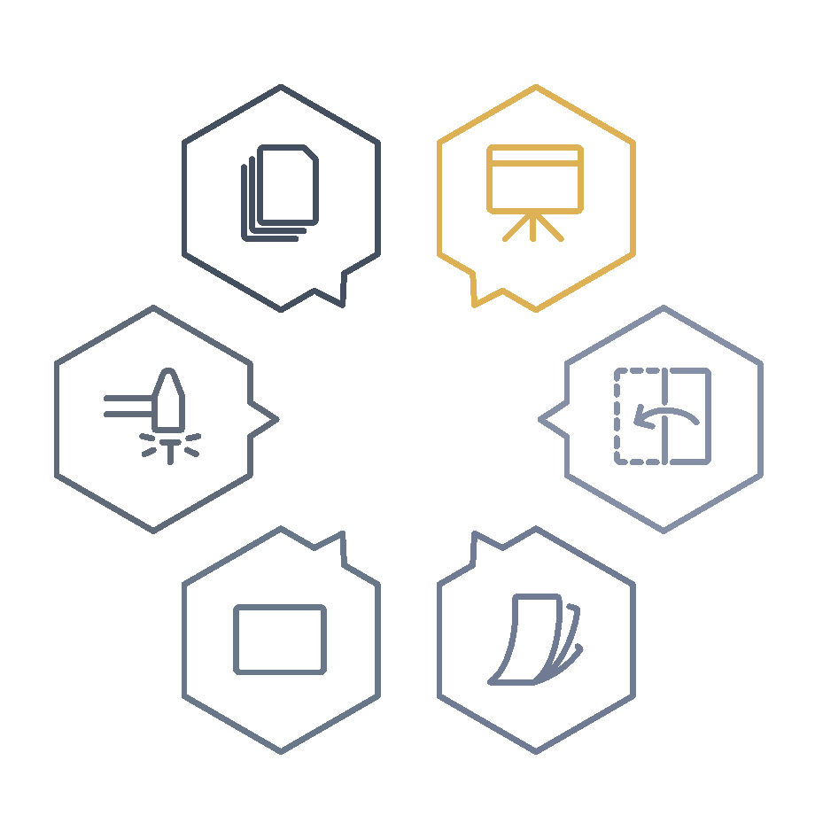 Die Mitteltafel ist einseitig nutzbar, während die beidseitig beschreibbaren Flügel zusätzlichen Platz für Notizen, Abläufe oder Besprechungspunkte bieten. So entsteht eine große, vielseitig einsetzbare Präsentationsfläche, die sich nach Bedarf öffnen oder schließen lässt.