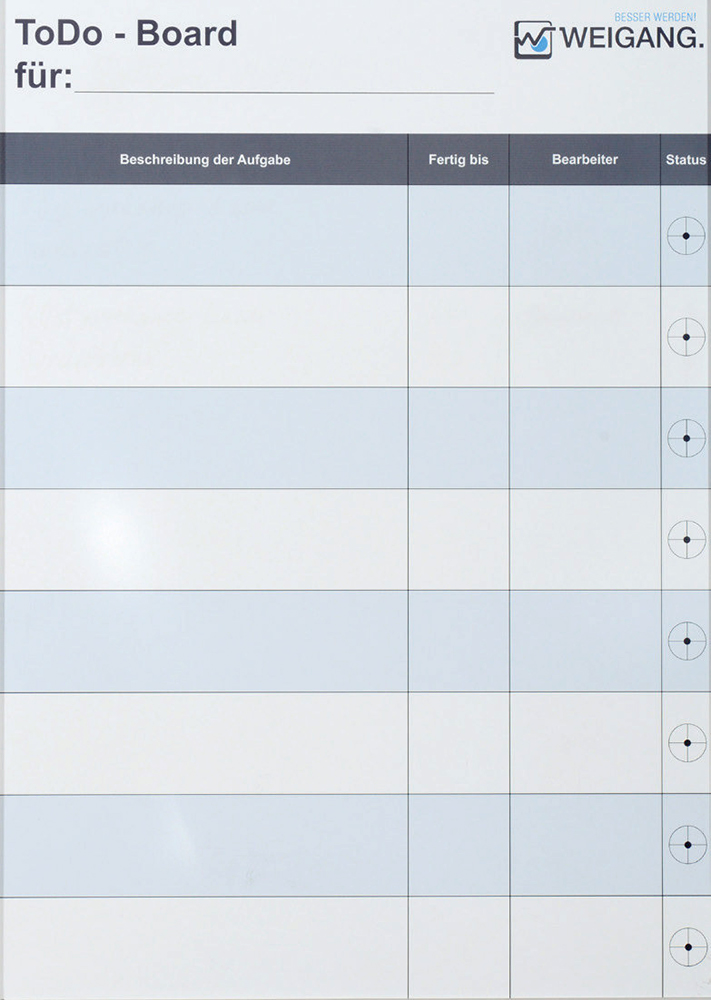 Ihr Mehrwert: Eine moderne Shopfloor-Tafel, die sich Ihren Abläufen anpasst, Informationen sichtbar macht und die Zusammenarbeit im Team nachhaltig verbessert. Ideal für strukturierte Meetings, transparente Kennzahlen und effiziente Prozesse.
